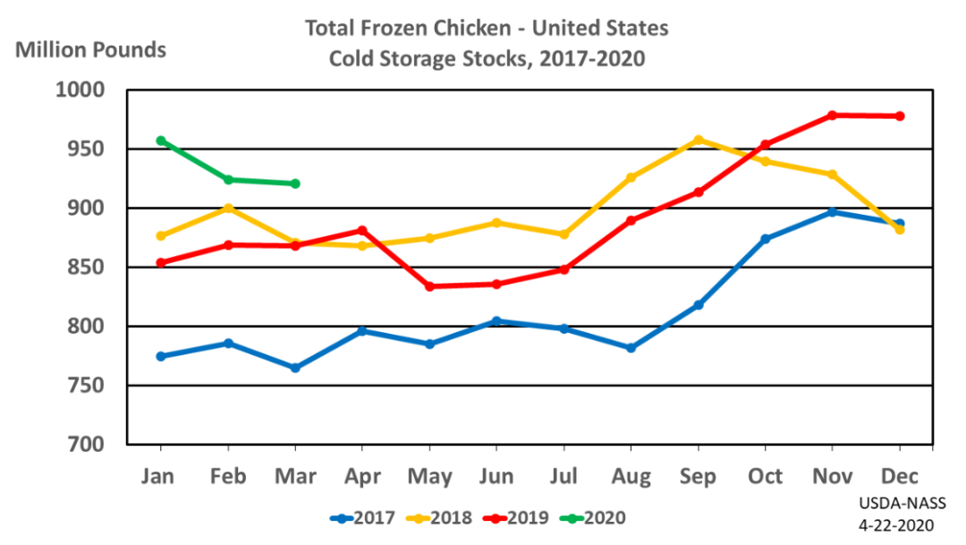 其实美国的冷冻库存有很多肉。美国农业部上周报告的库存鸡肉为9.21亿磅,无骨牛肉为4.67亿磅,其中包括碎肉以及更多优质的烤肉和牛排。但是,使用冷冻牛肉,猪肉和鸡肉来弥补肉类加工厂关闭造成的短缺是一个挑战:这是因为许多冷藏产品的包装都是用于餐馆和食品服务的,基本上都是大切块和整块肉,重新包装成可供家庭使用的产品需要进行解冻-重新分割-重新包装这样一个步骤。