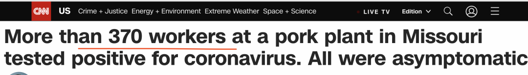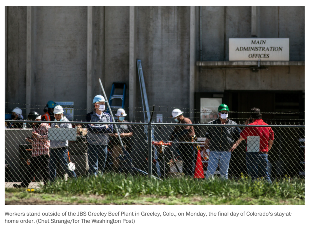 位于科罗拉多州的JBS牛肉工厂,在疫情爆发时关闭了两周,重新开放后,病例在短短三天内从120倍增至245例。