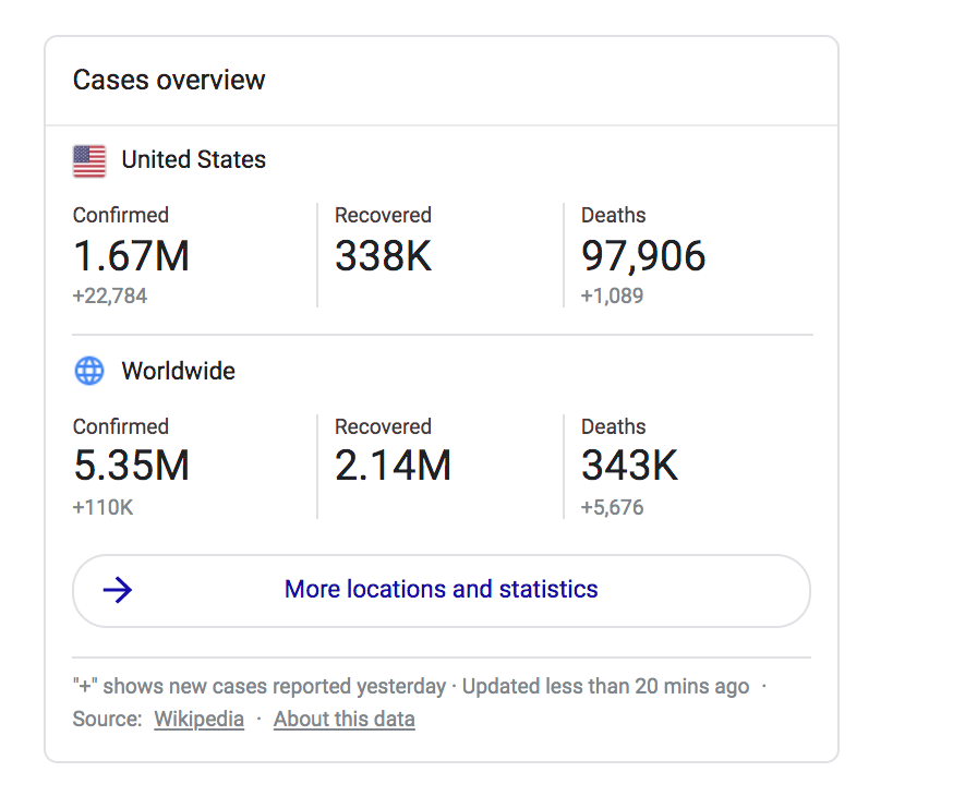 美国新冠死亡人数已经逼近10万大关,确诊人数已经超过167万人。