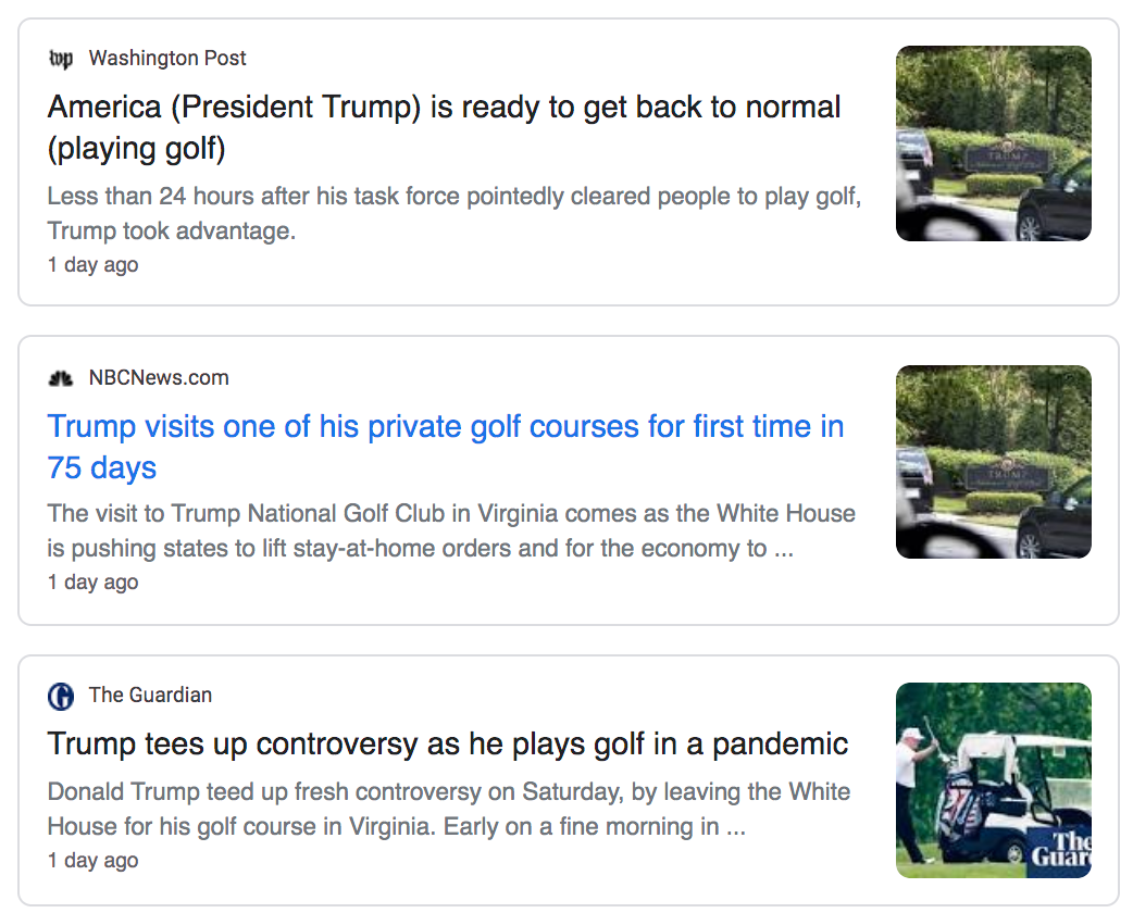 但总统呢?他也很委屈,因为疫情,他已经70多天没打高尔夫,创下了川普上台以来的最长时间没打高尔夫球的记录。