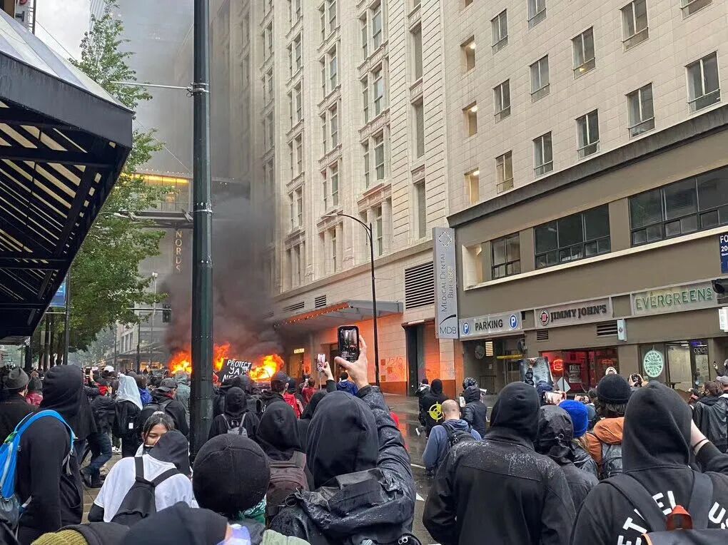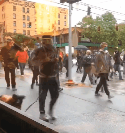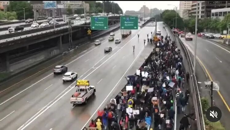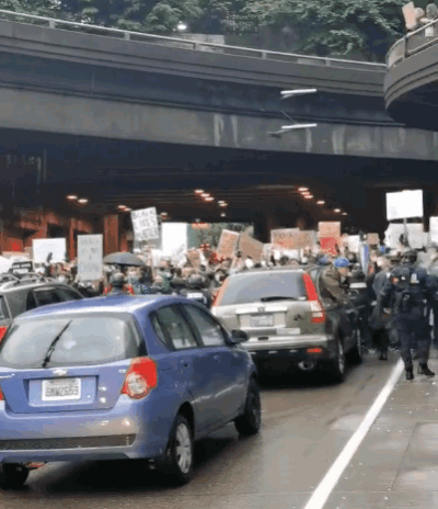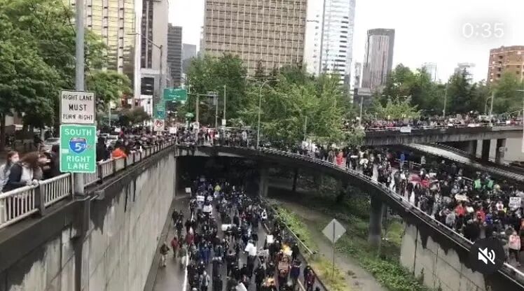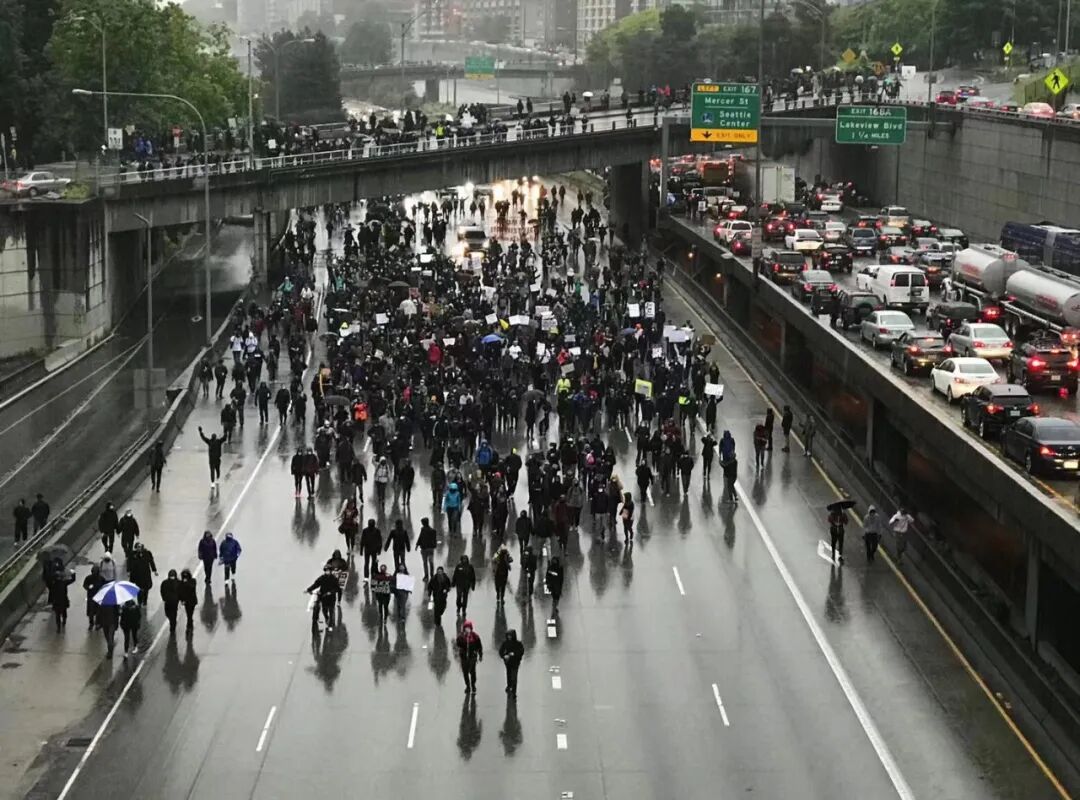 👆西雅图游行队伍直接把高速公路堵住