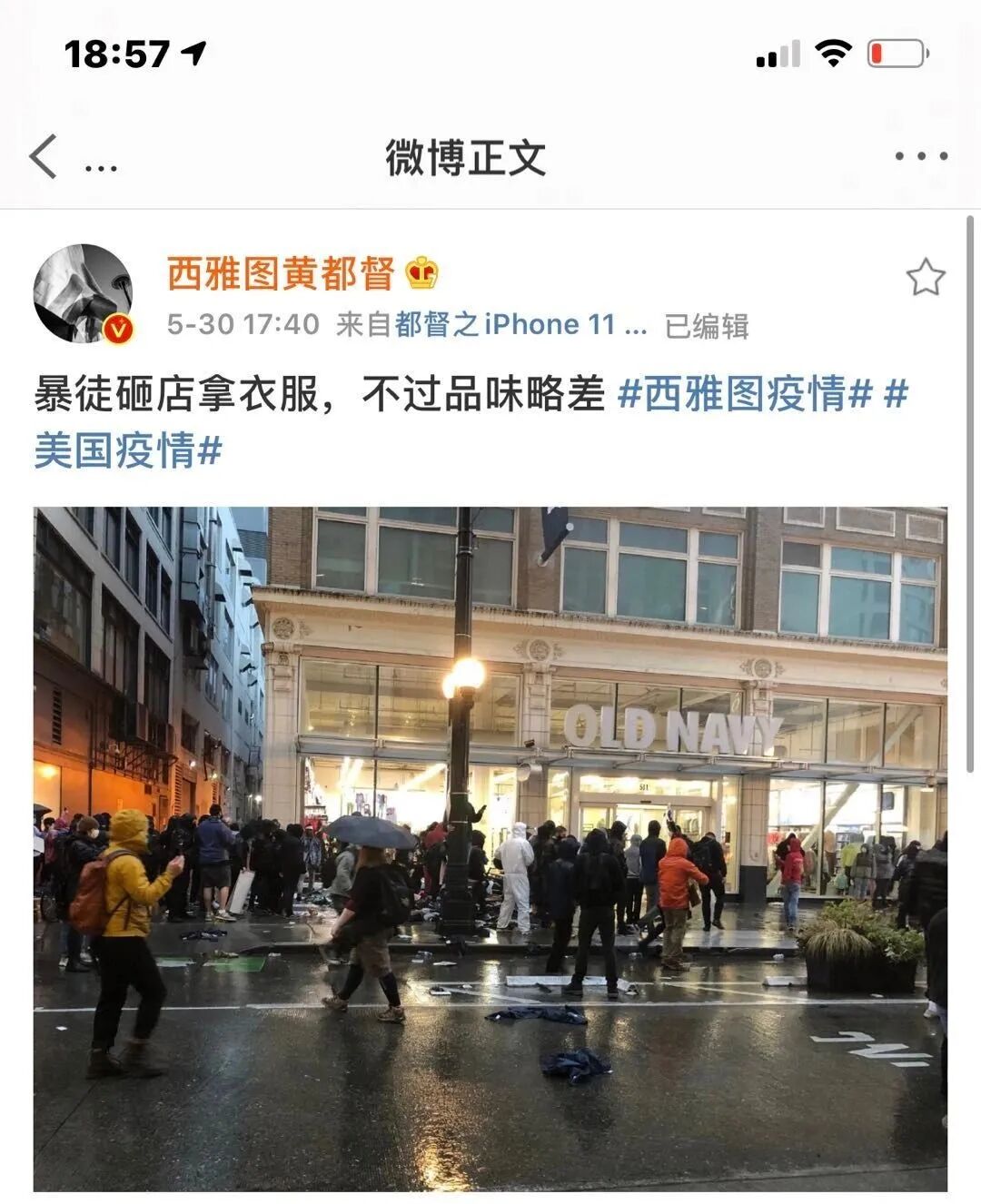 还砸抢了平民品牌OLD NAVY