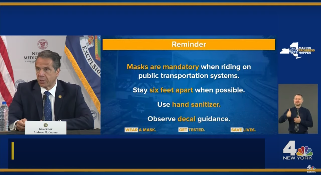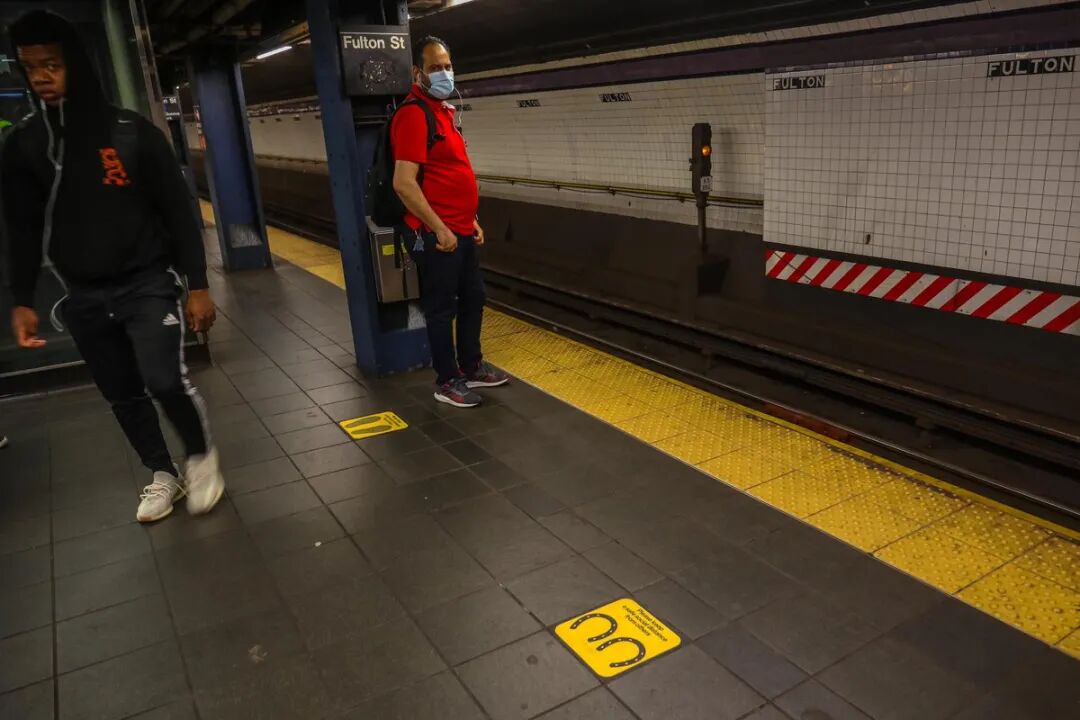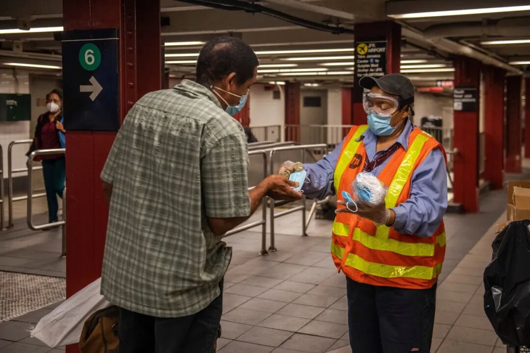 在地铁站和地铁上必须戴口罩。如果你忘记带口罩,MTA将免费提供口罩和一小瓶洗手液。
