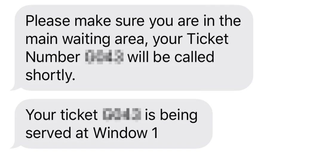 还有2-3个号码的时候,才让人进去坐着等。这时收到了后续的短信通知,叫号的时候也是会给你的手机发短信。