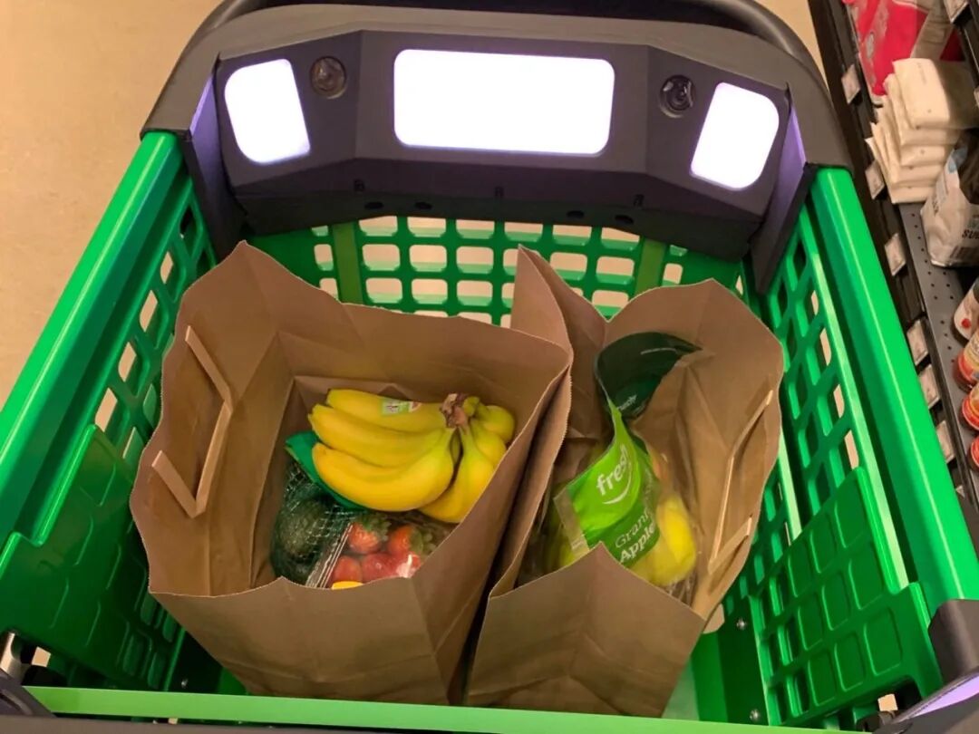亚马逊生鲜超市的核心是亚马逊最新推出的店内购物推车Dash Cart。