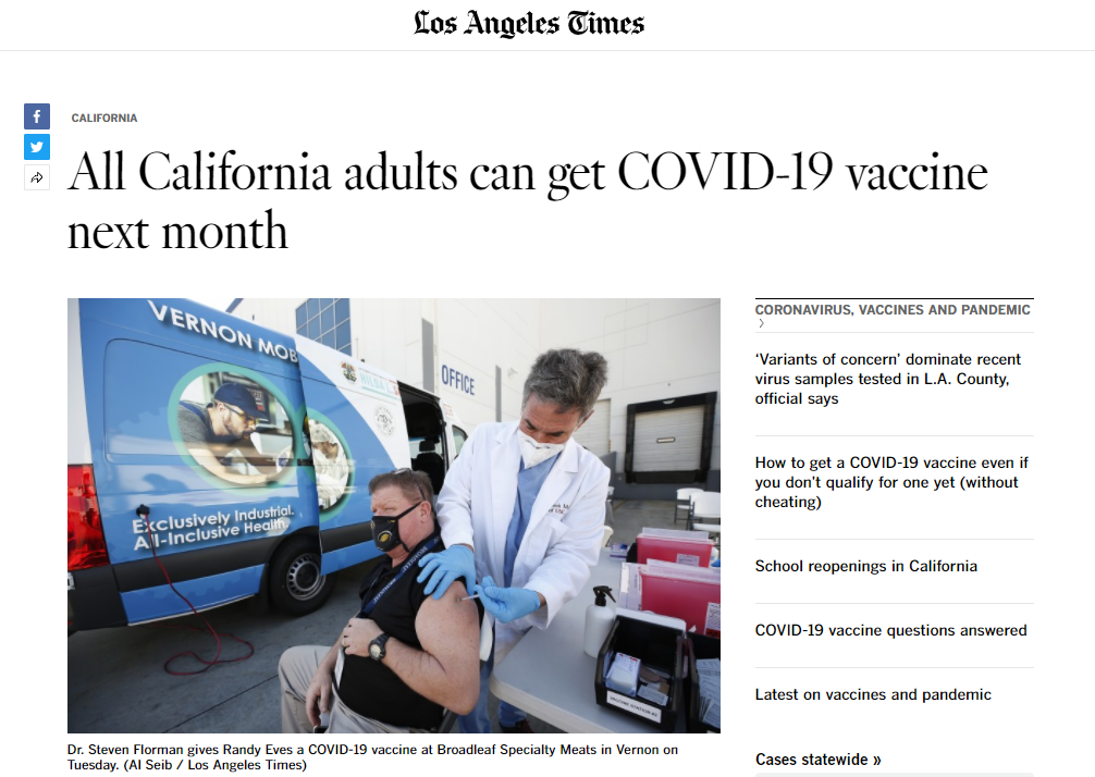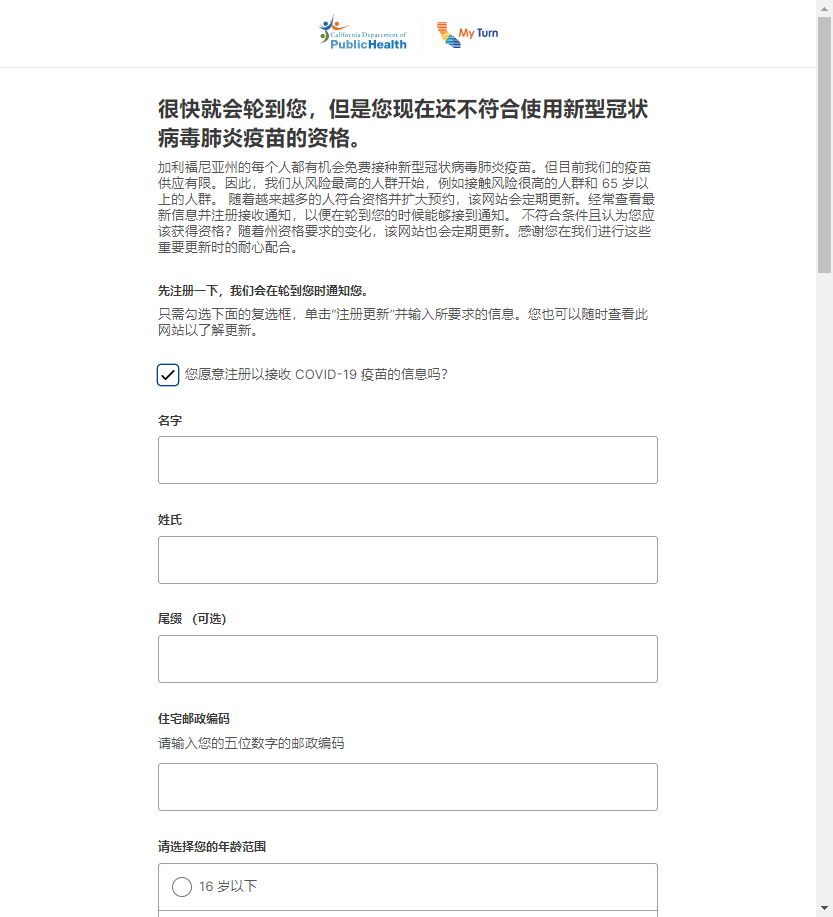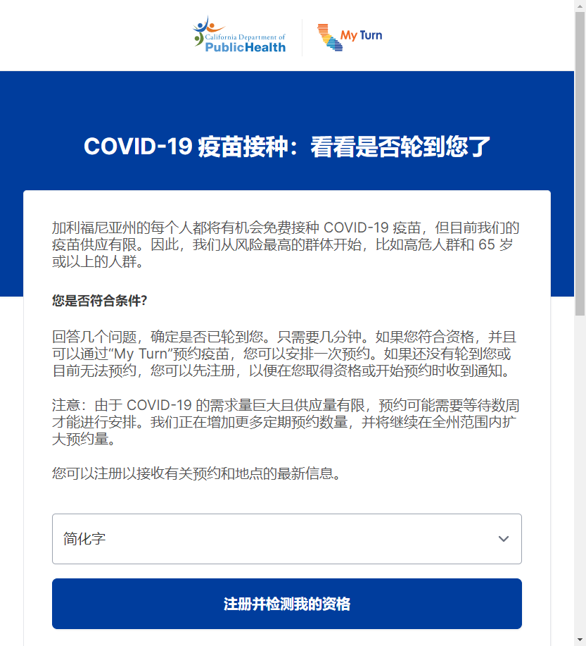 主页 城市 终于! 4月15日起加州所... 旧金山/湾区 终于! 4月15日起加州所有成年人可接种疫苗! 通过 us24hours - 2021年3月26日 2793 0 Facebook Twitter Pinterest WhatsApp ————–硅谷生活大爆炸————– 最近看到美国不少州都宣布可以全民接种疫苗的时间,咱大加州人是眼巴巴的羡慕啊… 今天加州官宣来了:下个月起,加州所有人都可以接种疫苗啦!终于要轮到我们啦✌️ 洛杉矶时报发布最新消息,目前加州在疫苗接种上进展迅速,从下个月开始,所有加州人都将获得接种疫苗的资格。 从4月1日起,50岁以上的加州居民都可以预约打疫苗; 从4月15日起,所有加州成年人(16岁以上)都可以预约打疫苗。 加州的官员们表示,之所以接种疫苗的人群范围扩大如此迅速,是由于疫苗供应数量的增长。在接下来的几周内,加州可获得的疫苗数量将会有一个急剧的增长。 根据预计,加州将在四月的前两周里,每周分别获得250万剂疫苗,然后在四月的后两周里,每周分别获得300万剂。 相较于当下每周获得的180万剂,这是一个相当大的进步。 对此,加州州长纽森今天在南加的一个疫苗接种处表示:隧道尽头的光明越来越明亮了! 拜登曾把所有人能获得打疫苗资格的日期定在5月1日,看来加州将提前两周完成这个任务。 加州接种疫苗的人数每天都在增长。到目前为止,已经有大约三分之一的加州成年人至少接种了一剂新冠疫苗;15%~25%的加州人已经完成了两剂疫苗的接种。 加州卫生局的Mark Ghaly表示:今天这个好消息表明,我们已经离战胜新冠不远了!但是,我们还有一段路要走,因为让所有人都接种疫苗需要时间。我们务必保持警惕,继续佩戴口罩,以及保持公共社交距离。 那么湾区人最关心的当然是该如何预约,又该注意些什么呢? 预约疫苗 可以通过访问网站myturn.ca.gov 也可以通过致电(833)422-4255 打开网站时会显示英文,但有换成简体字或繁体字的选项。 首先可以查看一下自己是否符合资格。 就目前来讲,符合接种资格的人群包括:紧急服务工作者,医务人员,护理机构的居住者,65岁以上的人群,从事食品与农业的人群,从事教育的人群,16~64岁之间的残障人士,患有严重慢性病的人群,以及其他基本工作领域的人员,比如交通物流,住房建设,公共卫生等。 但从4月15日起,无论是什么职业的人,都将可以预约疫苗。 查看自己是否符合预约资格,需要填写一些基本信息(年龄,健康状况,职业等) 填写完毕后点击继续,将跳转至您是否符合预约资格的画面。 如果您符合资格,将跳转至该画面。 输入您的邮编后,将会跳转至您附近所有可以注射疫苗的地点,只要查看可以预约的时间即可。 如果您不符合资格,将跳转至该画面。您仍可以选择先注册并等待通知。 大家可以根据自身情况,决定接种疫苗的时间哦~~~ references https://www.latimes.com/california/story/2021-03-25/all-california-adults-covid-vaccine-eligible-april https://myturn.ca.gov/ 更多湾区本地资讯请关注👇 如果觉得有用,欢迎点“在看”哦👇 相关 相关文章此作者的其他文章 健康 CDC发警告!13个州生蚝含病毒! 出行 夏威夷火山喷发,去大岛旅游危险 健康 奢侈品 Laundress 洗衣液菌群超标! 出行 美翻了!2022湾区15大节日彩灯已开启! 健康 斯坦福最新报告:全美94%人口感染过新冠病毒 旧金山/湾区 舰队周重回三藩!看美国海军蓝天使飞越金门大桥 - Advertisement -热门新闻 生活 【票帝指南】疫情下中国内地至北美线路总结 (10/... 健康 郑爽弃养孩子在美国合法? 我们和两家美国代孕中心,... 出行 仙女必备: 夏日野餐最全攻略来了! 默认 川普坐车出院了?
